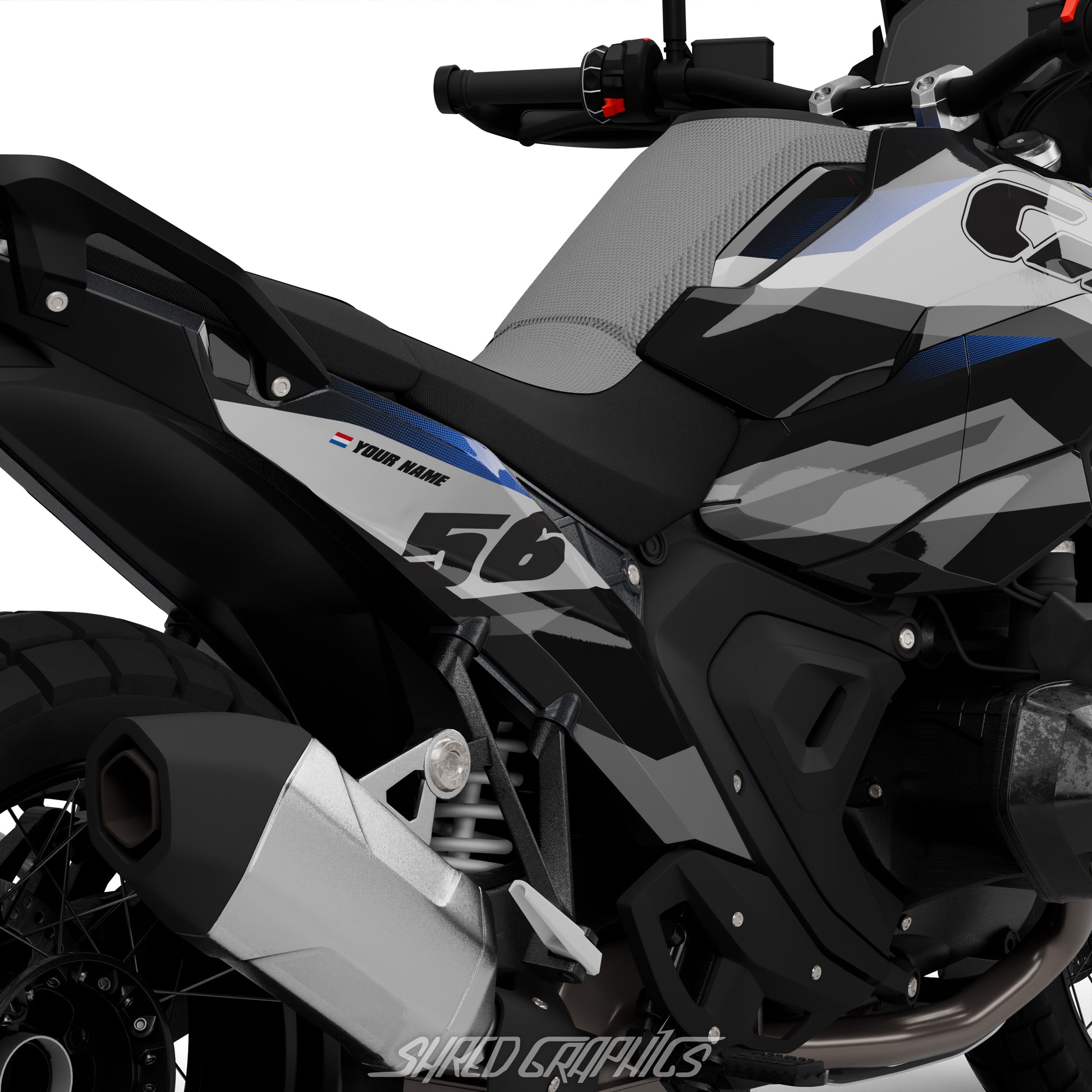 The full graphics kit (Trim+Numbers kit) covers most parts of the bike, there is a layout of all the parts below!