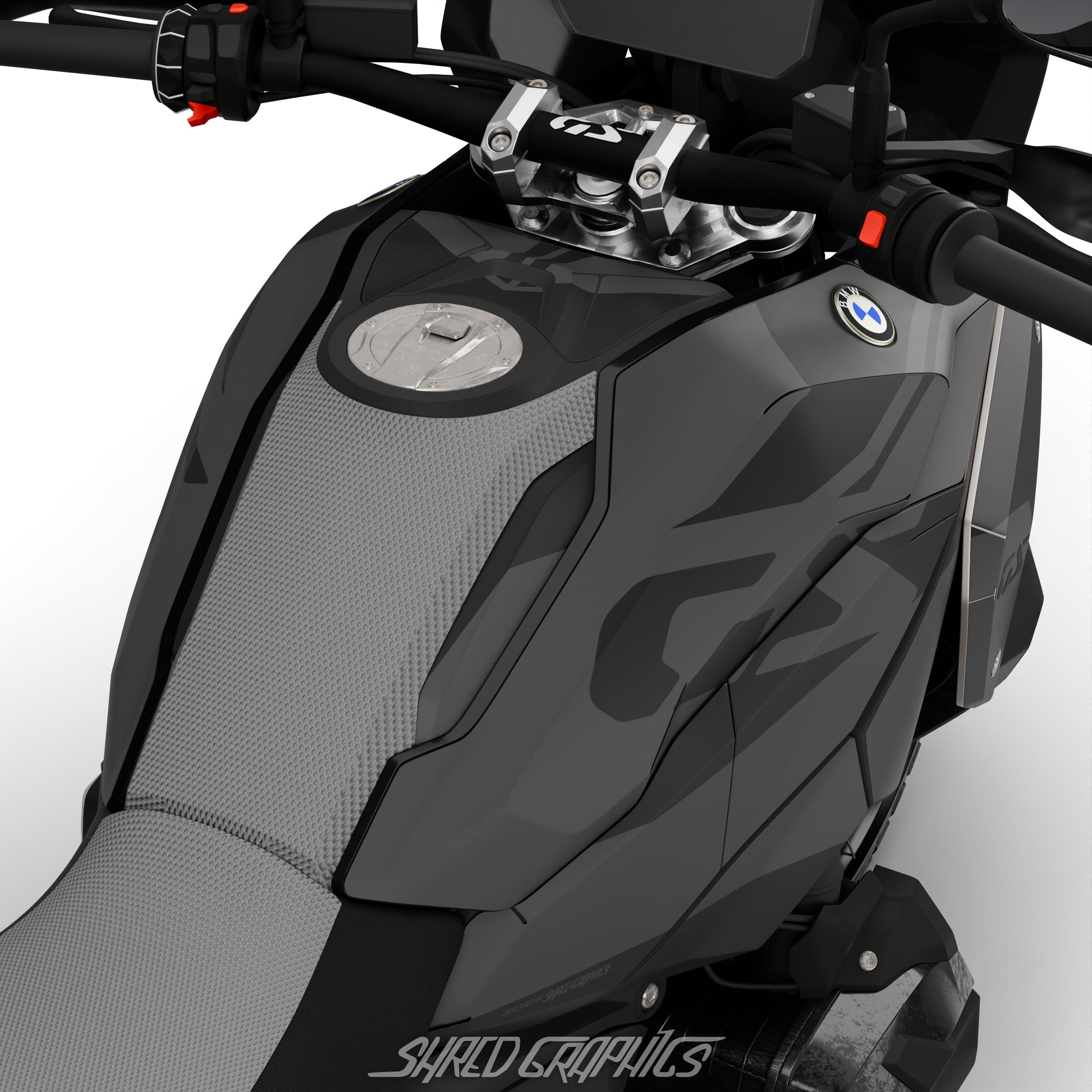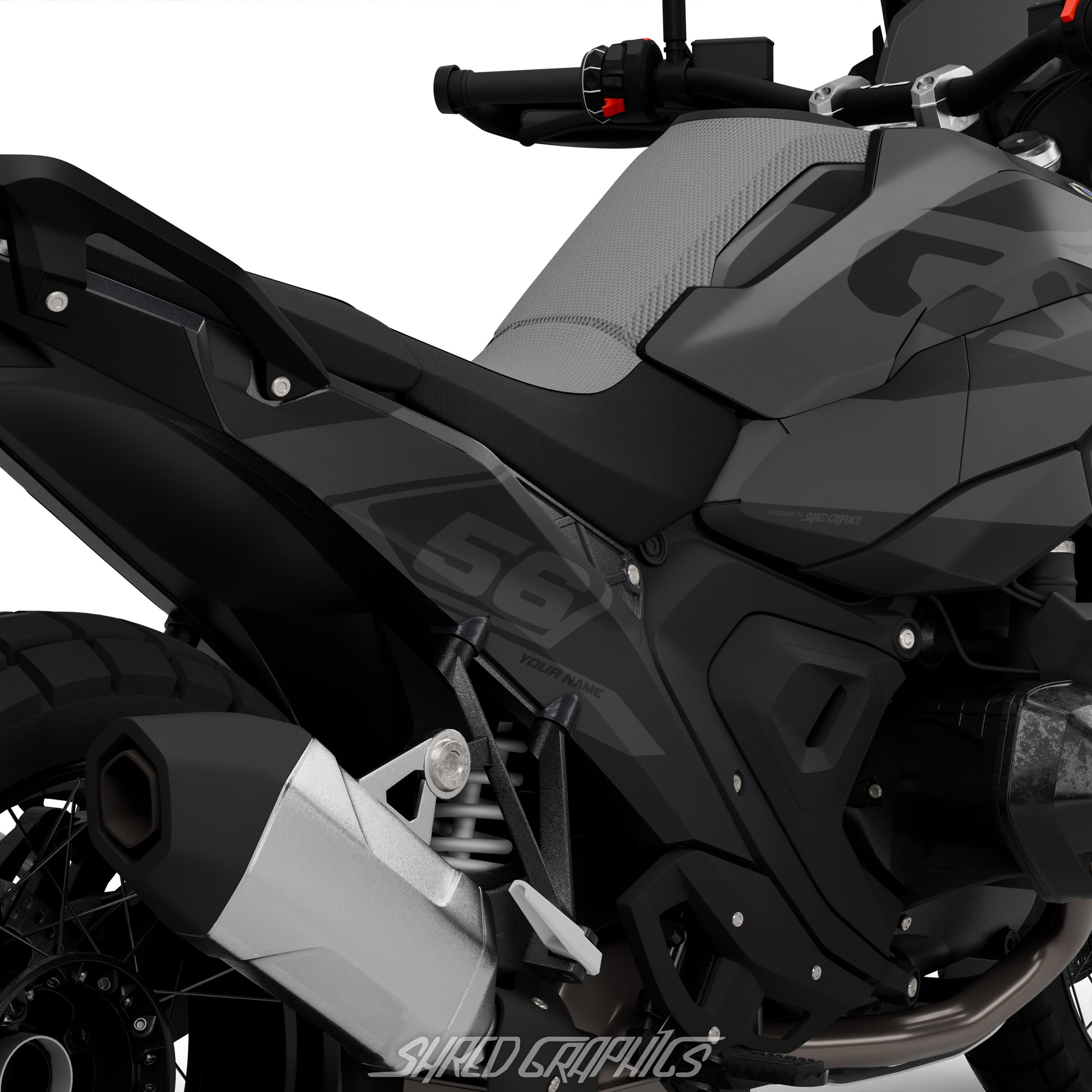 The full graphics kit (Trim+Numbers kit) covers most parts of the bike, there is a layout of all the parts below!