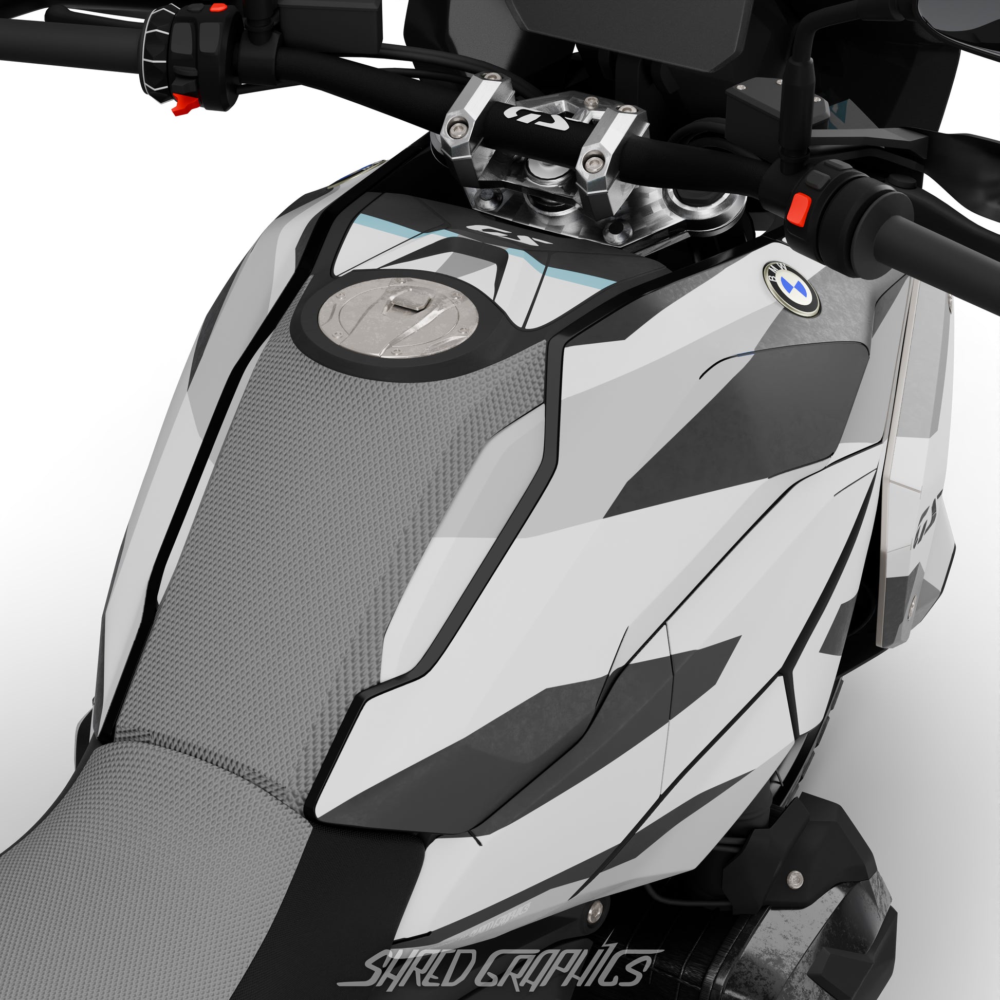 The full graphics kit (Trim+Numbers kit) covers most parts of the bike, there is a layout of all the parts below!